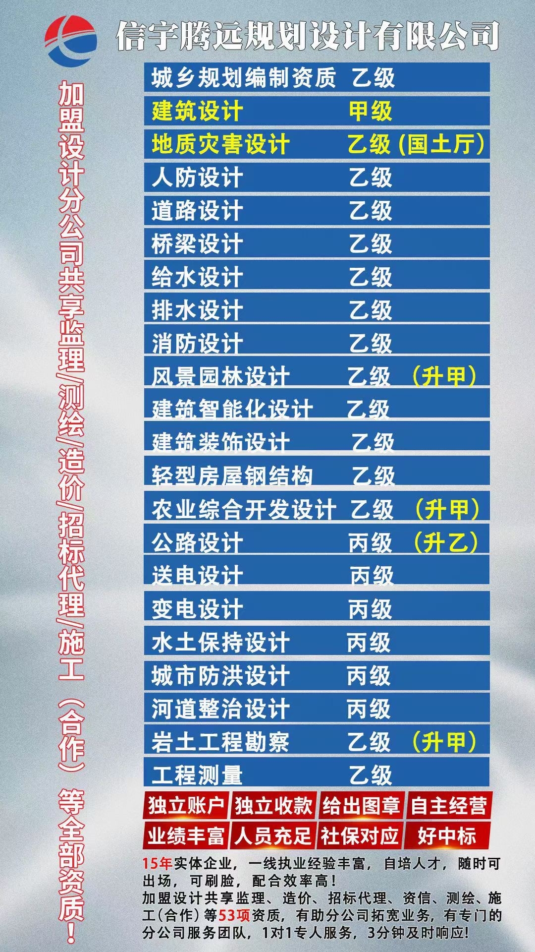 運營支持:乙級工程設計公司為加盟分公司提供必要的運營支持,包括技術支持、人員培訓、市場推廣等。